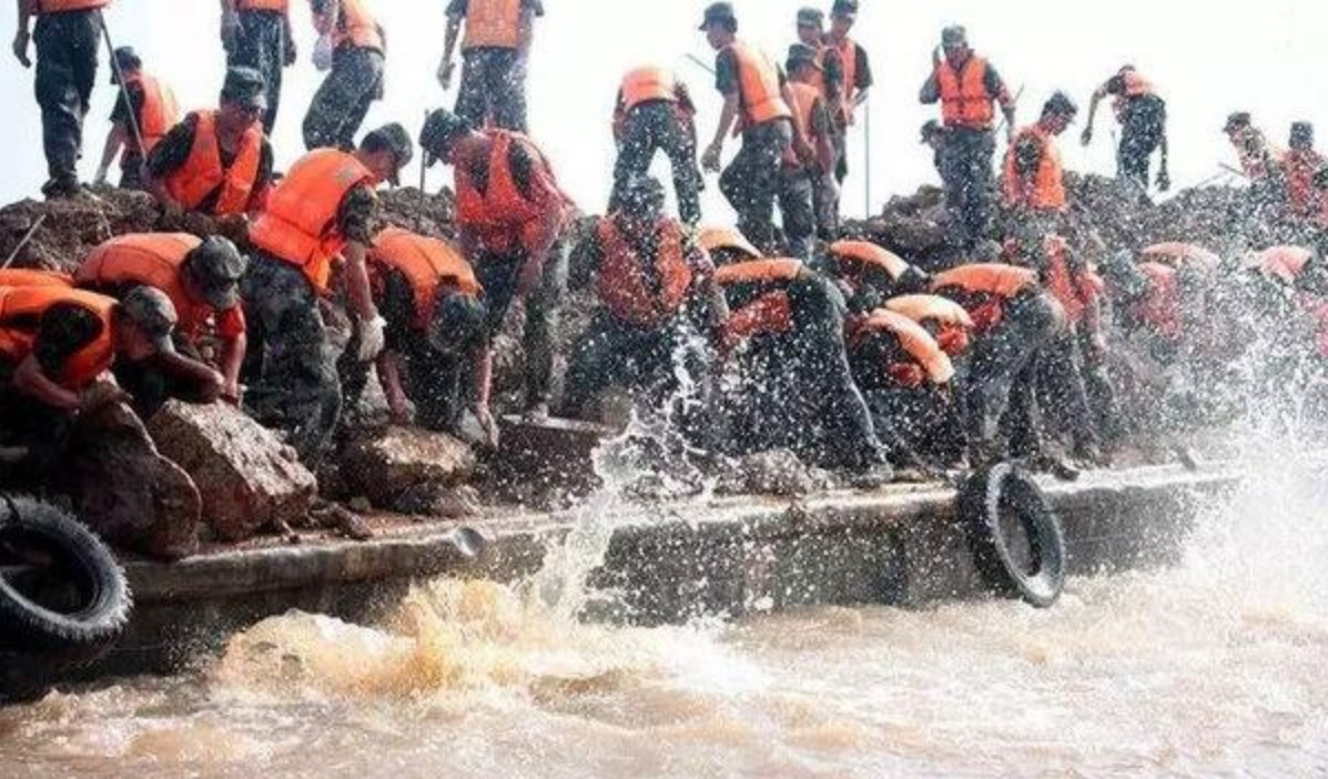 1998年,长江流域爆发百年未遇的特大洪水。在长江抗洪抢险最危险的时刻,江泽民主席果断下令,调动30多万部队紧急驰援,仅长江流域,就形成新中国成立以来用兵最多的一次人民解放军投入抗洪抢险。8月13日,长江出现第5次洪峰时,江泽民冒着酷暑赶到湖北,一路察看险情,一路鼓舞部队。在洪湖大堤,历经几十昼夜拼搏,但仍然精神抖擞的参战部队打出了自己的口号和标语。